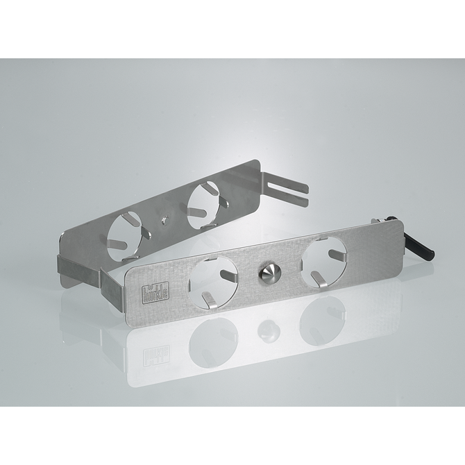 Die beiden hohen Laschen („Wände“) der Stütze umschließen die schmalen Seiten des Kanisters und verhindern so ein seitliches Verrutschen oder Kippen. Gerade auf Regalen, in Fahrzeugen oder bei Vibrationen – z. B. in Laboren oder Werkstätten – hält die Stütze den Kanister sicher in Position.