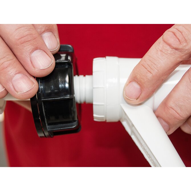 Ein passender Behälteranschluss mit Aufnahmebohrung ist im Lieferumfang nicht enthalten.