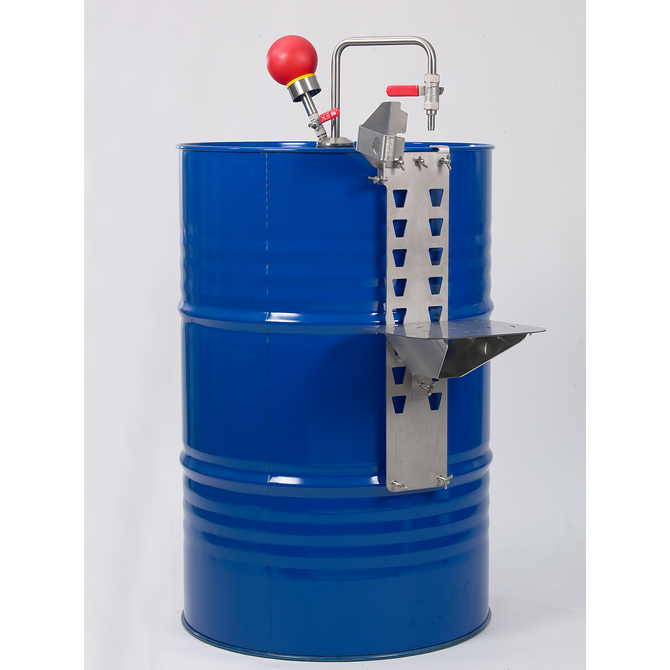 Die Fasshalterung ist ein praktisches Zubehör für das Umfüllen von Flüssigkeiten aus Fässern in kleinere Gebinde.