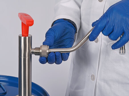 Die Fasspumpen aus Edelstahl sind elektrisch leitfähig und beständig gegen eine Vielzahl von Chemikalien und ermöglichen so ein sicheres und effizientes Umfüllen oder Dosieren von Flüssigkeiten in der Chemie-, Pharma- oder Lebensmittelindustrie.