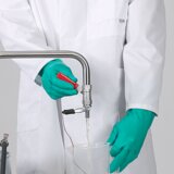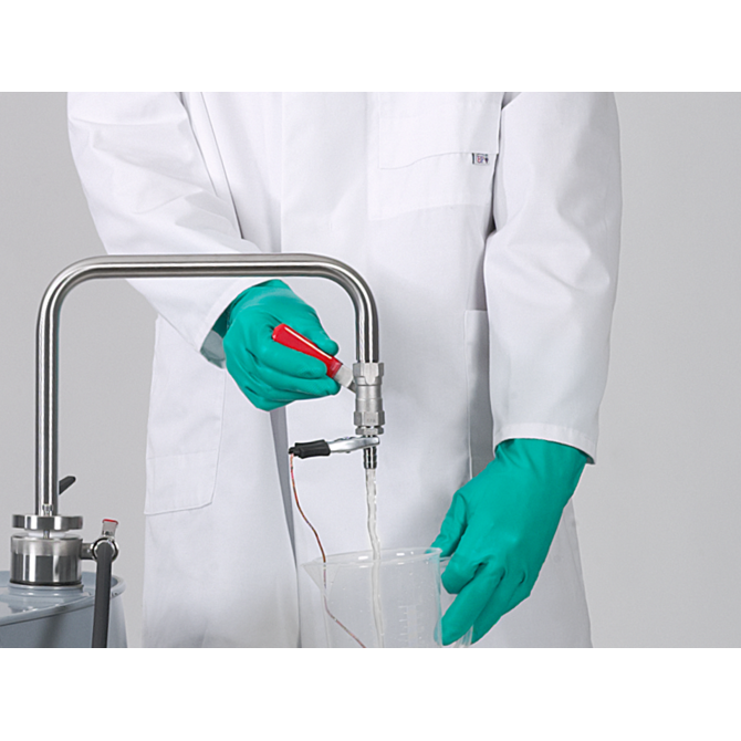 Alle mediumsberührten Teile sind aus Edelstahl (1.4301) und PTFE gefertigt. Mit dem Antistatik-Set von Bürkle kann die Pumpe beim Abfüllen von brennbaren Flüssigkeiten geerdet werden, damit sich keine elektrostatische Aufladung bildet.