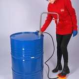 Fasspumpe für Lösemittel mit festem Auslaufbogen.