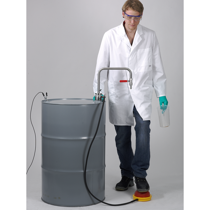 Die Lösemittelpumpe mit Fußbetrieb ist speziell für das Abfüllen von hochreinen Flüssigkeiten wie z.B. Lösungsmitteln geeignet.