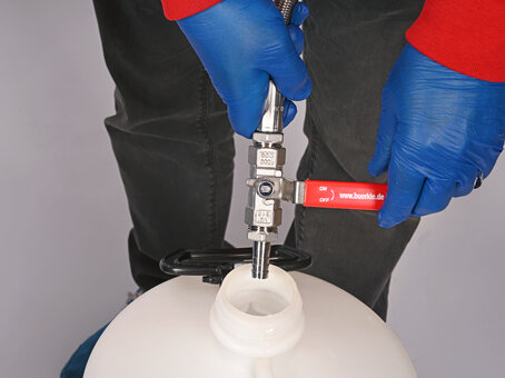 Durch die beiden Kugelhähne ist die Pumpe komplett absperrbar, somit können nach dem Abfüllen keine gefährlichen Dämpfe entweichen.