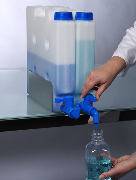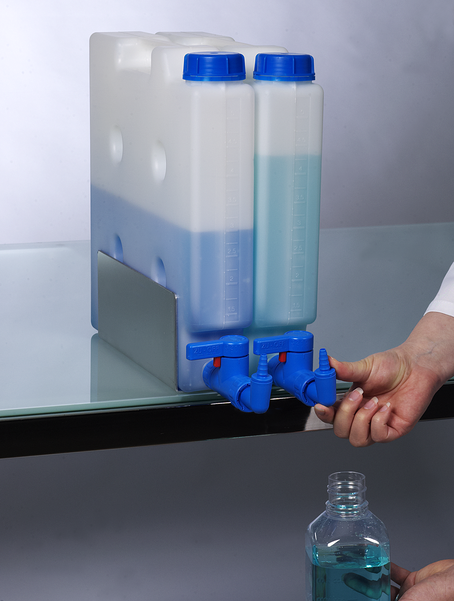 Mit der Kanisterstütze als Zubehör für zwei oder drei Kanister können beliebig viele Kanister frei aufgestellt werden.