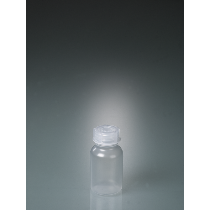 Die Weithalsflasche aus PP ist chemisch hochbeständig und unempfindlich gegenüber Stößen und Stürzen. Außerdem ist die Flasche lebensmittelecht und autoklavierbar.