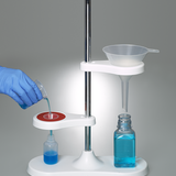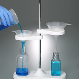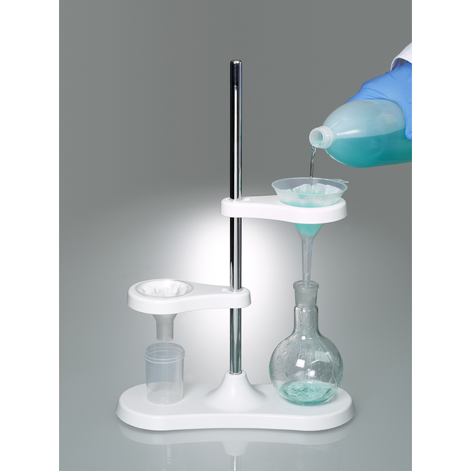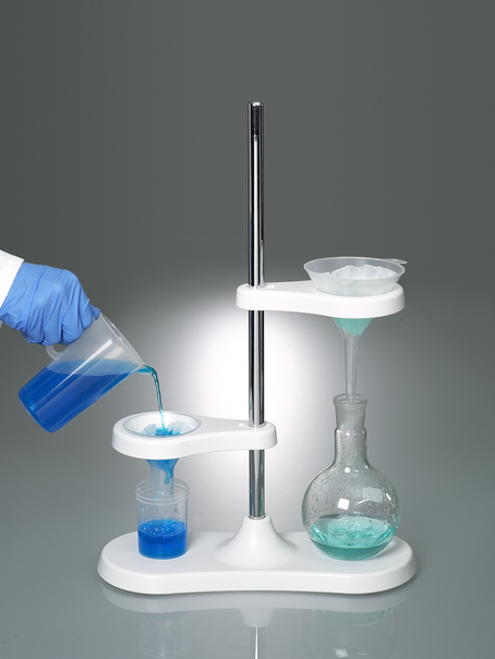 Το εργαστηριακό σταντ μπορεί να προσαρμοστεί ευέλικτα με αντίστοιχα εξαρτήματα, για παράδειγμα με υποδοχές χωνιών προσαρμογής ή υποδοχή για χωνιά Imhoff. Η βάση χωνιών μπορεί επίσης να μετατραπεί σε βάση πιπετών.