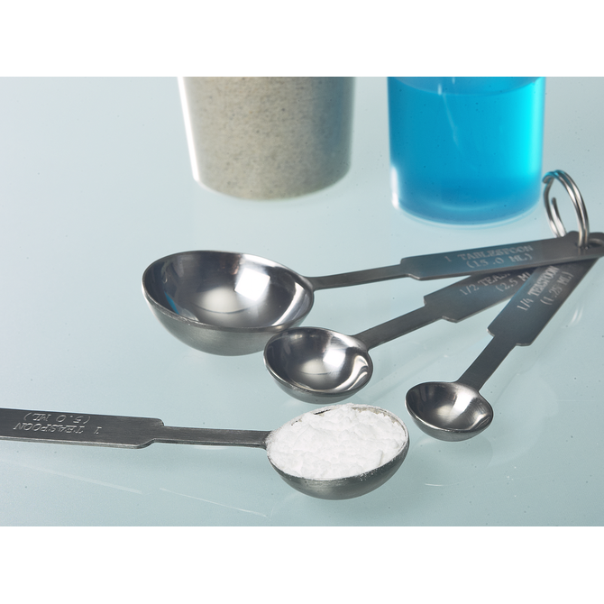 Dosing and measuring spoons can be used to measure small amounts of powder, granulates and liquids exactly and dose them precisely. For precise measuring, excess medium is stripped off the upper edge of the spoon. The content volume is engraved on the handle.