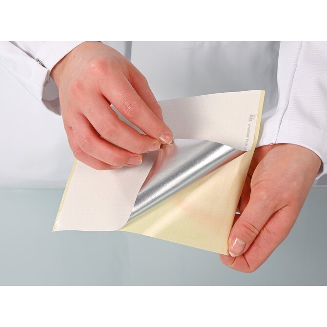 The adhesive complies with European food directives. Like the original, close-it food & pharma has an aluminium foil barrier layer. This makes close-it food & pharma suitable for sampling foodstuffs, pharmaceuticals, cosmetics, food supplements, even frozen goods - in short, anywhere where special purity is required.