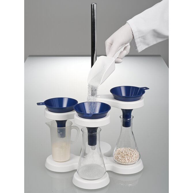 The disposable funnel ensures no loss when transferring liquid samples or free-flowing solids. That makes this practical and hygienic pouring aid a helpful accessory for sampling or in laboratories.