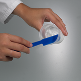 The sample spatula can be used to apply, spread or smooth viscous media such as pastes or creams. The spatula easily reaches into the corners and curves of various containers and is suitable for scraping out bowls, removing residues or wiping off Bürkle's measuring and dosing spoons.