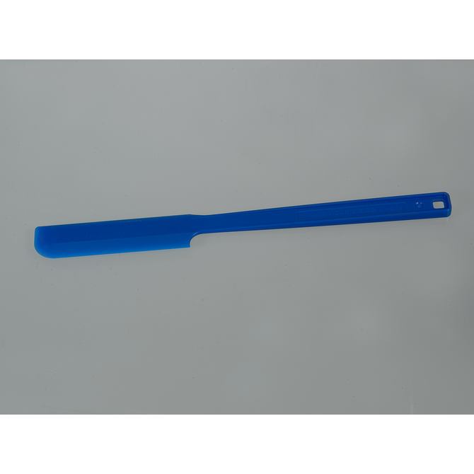 The dimensionally stable long edge of the plastic scraper is ideal for cutting viscous media. A small tip on the long edge can be used to tear packaging film, for example. The scraper is also suitable for stirring and mixing.