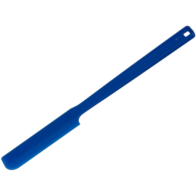 The dimensionally stable long edge of the plastic scraper is ideal for cutting viscous media. A small tip on the long edge can be used for ripping, for example packaging film. The scraper is also suitable for stirring and blending.