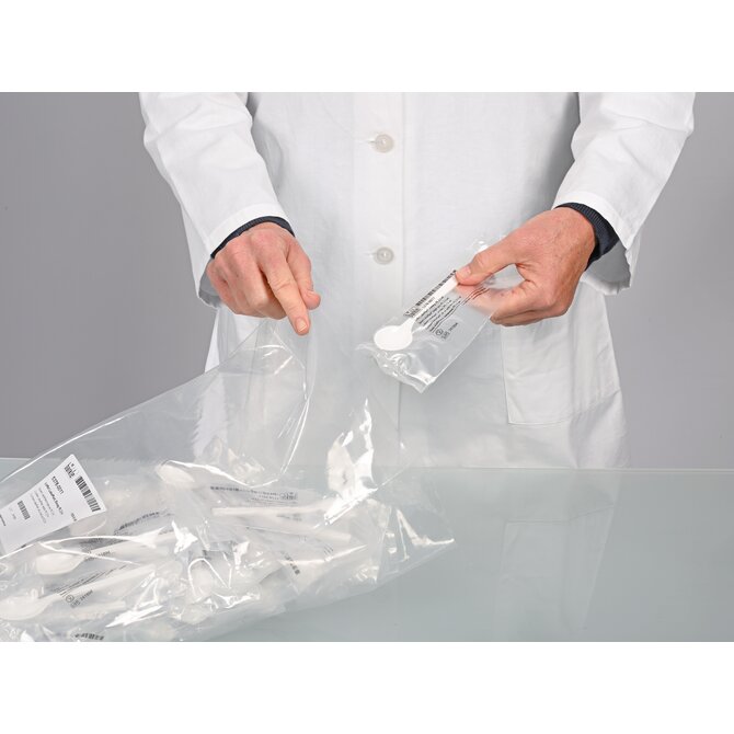 The disposable spoon is ideal for sampling powders, granulates and fluids.