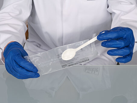 The disposable dosing spoon is suitable for use as a sample spoon for taking small sample quantities. Since the plastic volumetric spoon was developed for single use, there is no cleaning and the possibility of cross-contamination and impurities is excluded.