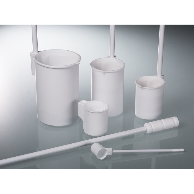 All parts coming into contact with the sample medium are made of pure white PTFE. Completely inert against all substances (with the exception of elementary fluoride). The rod is stabilised with a steel core which is completely encapsulated in PTFE. The scoop PTFE with 10 ml has a strong rod with a length of 155 mm.