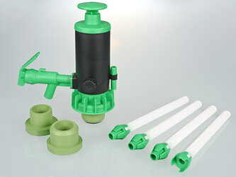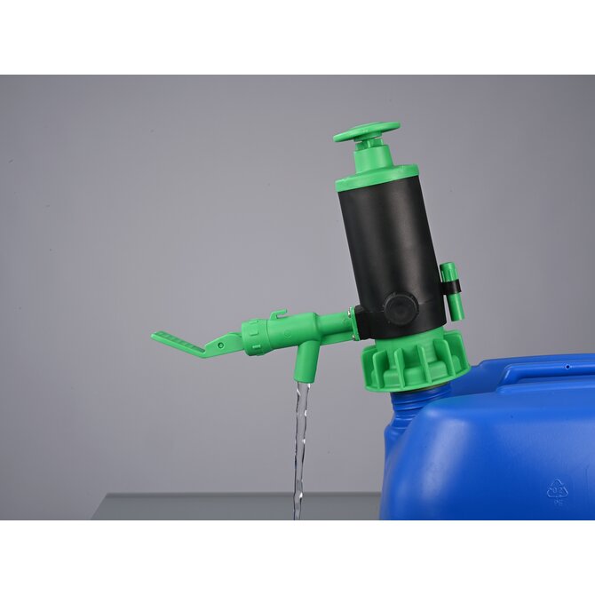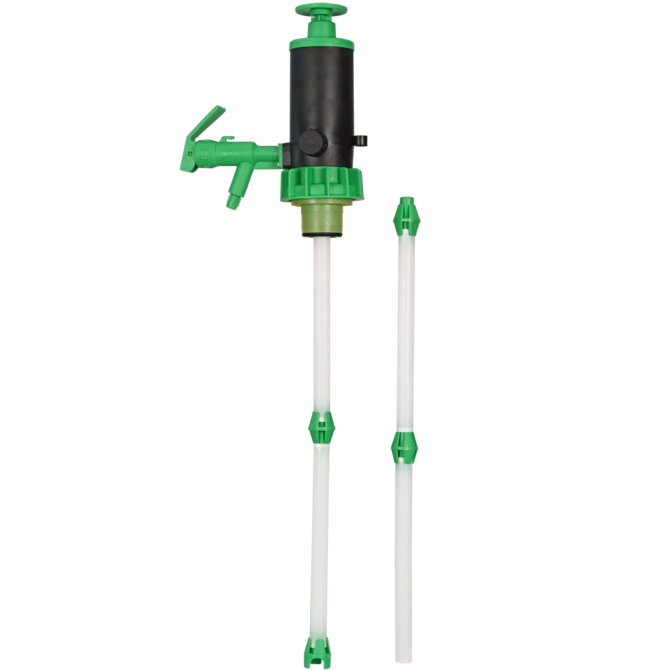 PumpMaster barrel pumps operate on the overpressure principle. A manual piston creates an overpressure in the container, which pumps the liquid out of the container.