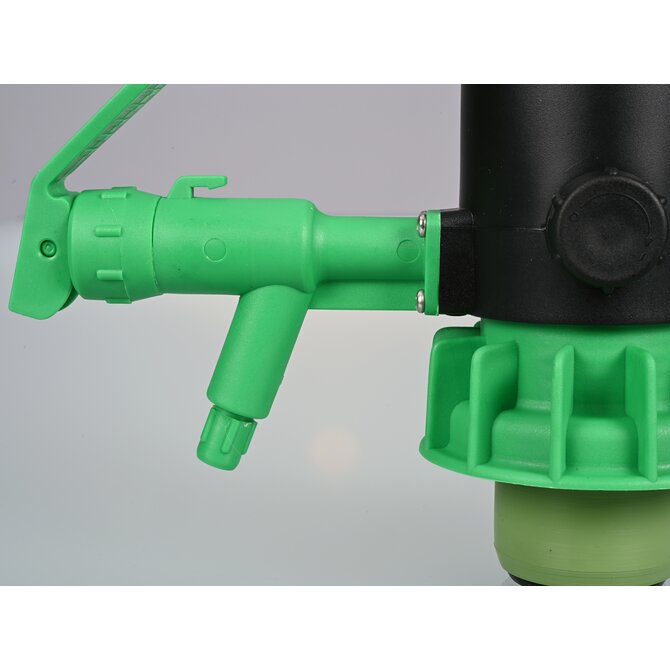 The PumpMaster's integrated tap enables precise dosing of liquids. The tap can be operated to dispense liquid in a targeted manner, or can be opened for flow by folding it forward.