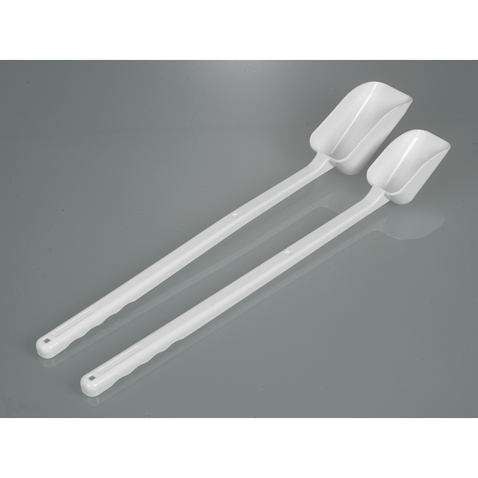 The scoop with extra-long handle made of high-quality, white polystyrene is manufactured under ISO class 7 cleanroom conditions and individually packaged for maximum cleanliness requirements.