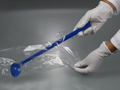 The sampler made of Green PE is produced in our class 7 (10,000) clean room, sterilised and individually packaged for disposable use.