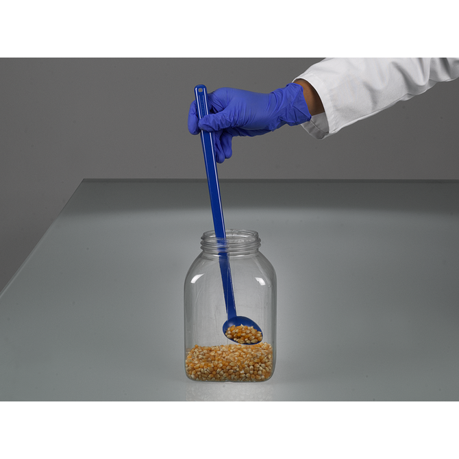 The sampling spoon with long handle can be used to remove powders, granulates, pastes or liquids.