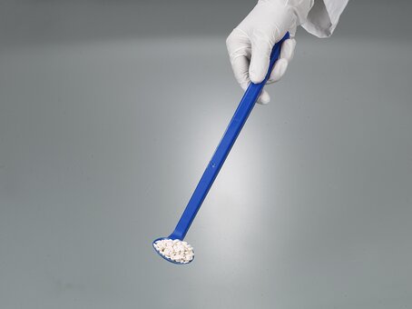 The laboratory spoon is suitable for single use in the sensitive areas of pharmaceuticals, chemistry, cosmetics, animal feed and food & beverage.