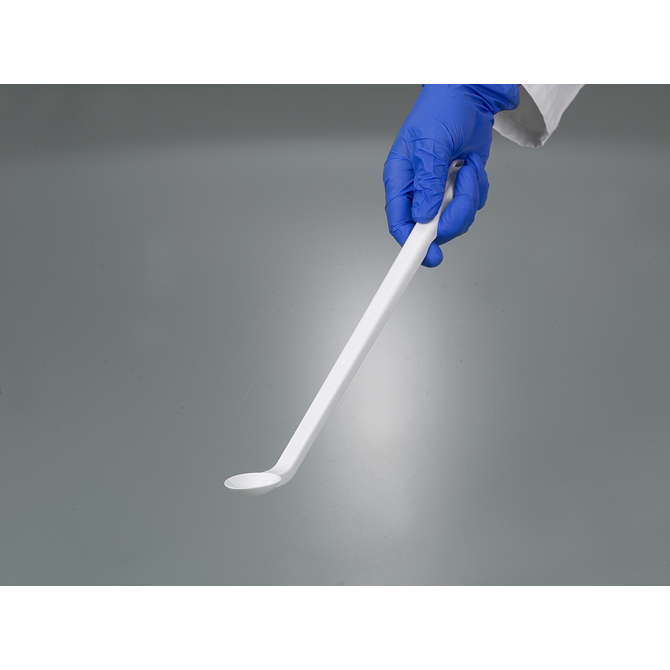The laboratory spoon is suitable for single use in the sensitive areas of pharmaceuticals, chemistry, cosmetics, animal feed and food & beverage.