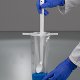 The disposable dosing spoon is suitable for use as a sample spoon for taking small sample quantities. Since the plastic volumetric spoon was developed for single use, there is no cleaning and the possibility of cross-contamination and impurities is excluded.