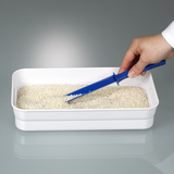 As a result of the long, ergonomically-shaped, stable handle and a sharp blade, it is possible to even penetrate directly into containers such as paper or plastic sacks. The spatula for foodstuffs is ideal for sampling powders, granulates and pastes.