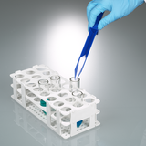 The spatula with transparent sealing sleeve can be closed again immediately after sampling and the exclusion of contamination can be safeguarded for the sample taken.