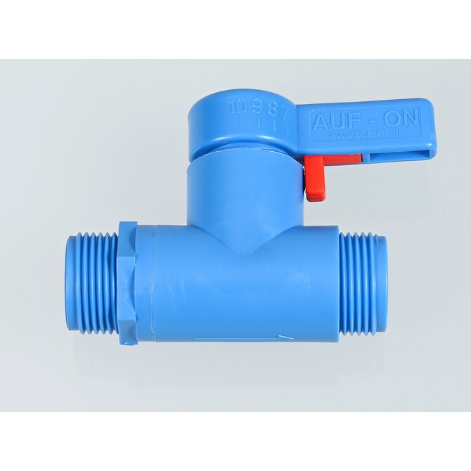 Ball valve PP fits all containers with G 3/4" connection thread. It can be attached to nearly all containers with thread adapters. Robust industrial quality, large flow.