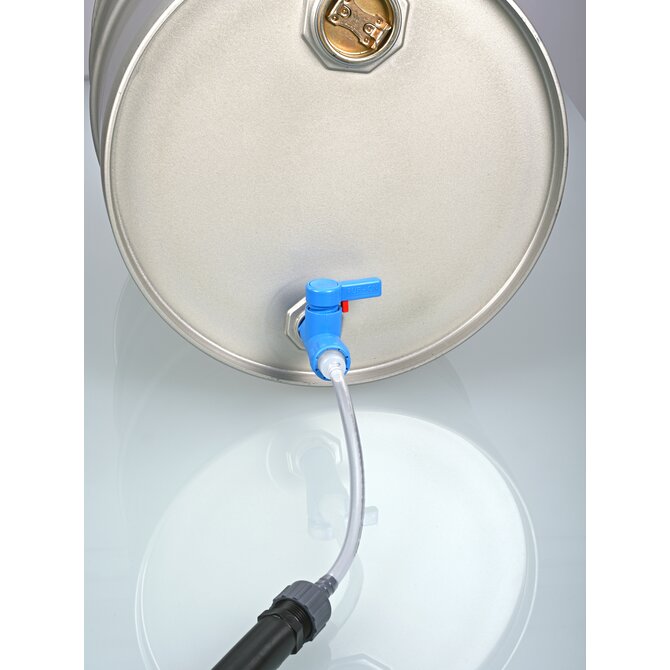 The StopCock hose nozzles are special outlet fittings that can be screwed onto the Bürkle StopCock drain tap. They allow a hose to be connected directly to the tap in order to guide liquids precisely into containers positioned further away. The hose nozzles are available in various nominal sizes to match the corresponding internal hose diameters. They are chemically resistant and dimensionally stable. Assembly is done using a union nut on the ¾″ external thread of the StopCock. A dispensing hose can then be securely attached. With the hose nozzles, liquid flows directly and without dripping losses from the drum tap into, for example, bottles, jerrycans or over longer distances.
