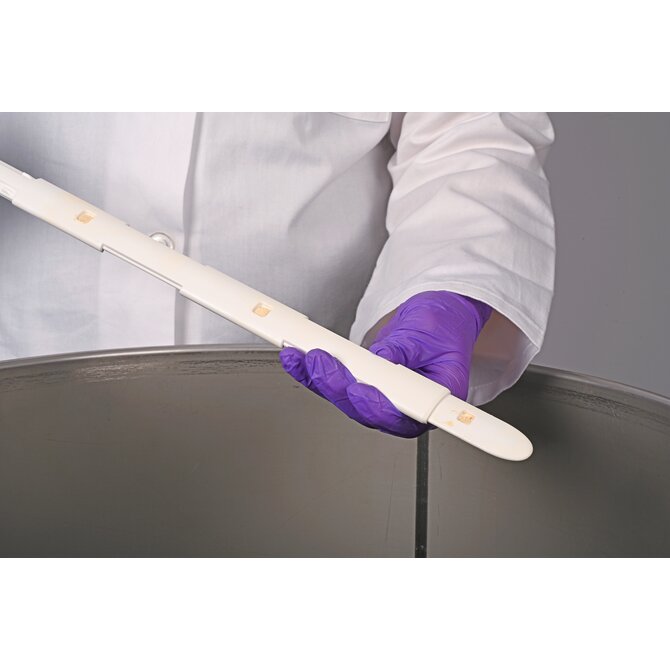 The ZoneDispo disposable all-layer sampler is used in sampling to collect a representative all-layer sample from three different layers. Suitable for free-flowing powders and small-grain granulates. The collected sample can be secured and transported in the closed sampler.