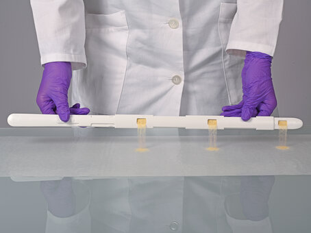 The three separate sampling chambers of the PharmaDispo enable simultaneous sampling from different layers or zones. This allows for a differentiated examination of material composition across multiple layers, which is particularly beneficial when a single sample does not adequately characterize the material. Samples can be analyzed individually or combined into a representative composite sample.