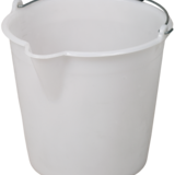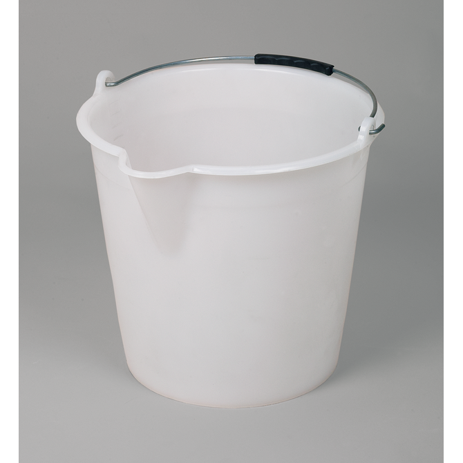 Industrial bucket for transporting, decanting and mixing. Safe emptying with wide spout. Handle made of metal.
