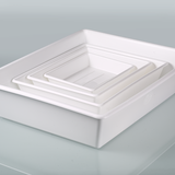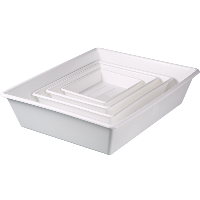 The laboratory trays are practical all-purpose trays that can be nested when empty, also durable, shatterproof and resist flexing. The trays have a strong, rounded rim.