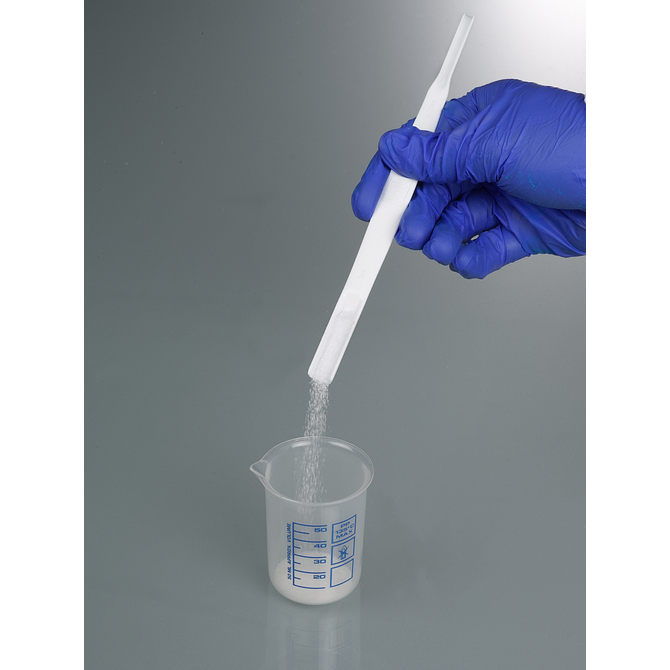 The micro spatula can be used to sample, transfer or process small amounts of chemicals, powders, granulates, pastes, creams or liquids.