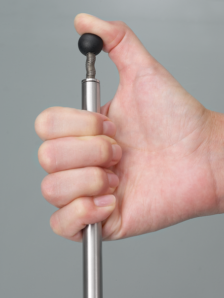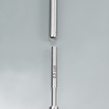 Sampler for powder in the pharma area, made of stainless steel AISI 316L, material 1.4404. The especially slender tip can be inserted easily and deeply in order to take the sample. The conical inlet of the tip allows the collection of either very small or larger quantities. StickProof is constructed in one piece without edges, grooves or crevices for perfect and easy cleaning. The sample can be filled directly into the sampling bag from the outlet end. Fasten the bag with a sturdy clamp.