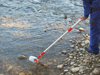 Sampling depths down to 6 m (19.69 ft.) can be reached with the adjustable telescopic aluminum rod.