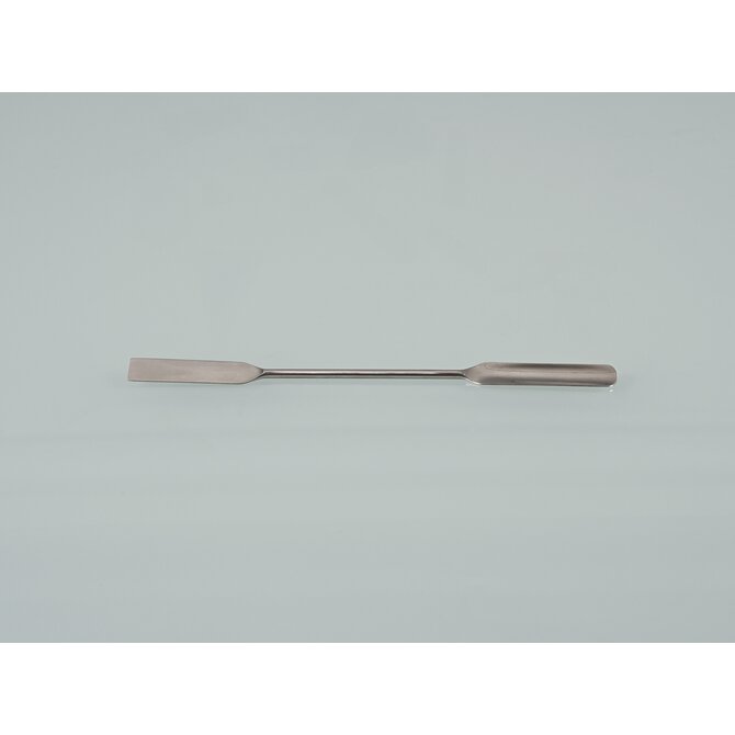- Powder spatula, square/semi-cup-shaped, made of stainless steel