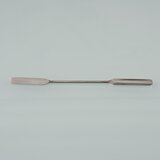 This stainless steel 1.4301 (304) powder spatula combines two sophisticated functional surfaces into one compact tool. It provides maximum control when working with powders, granules, and pasty materials. The half-shell side safely picks up, fills, and doses small quantities of material. The flat side with square edges can be used to precisely smooth, scrape, and distribute materials. These features make the spatula a hygienic, versatile, and robust laboratory tool indispensable for chemical, pharmaceutical, cosmetic, and food technology applications.