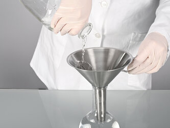 The rugged stainless steel filling funnel makes it easy to fill and transfer free-flowing powders, liquids and low-viscosity media. With an air vent on the discharge tube, it provides complete and unobstructed flow for efficient handling of a wide variety of materials.