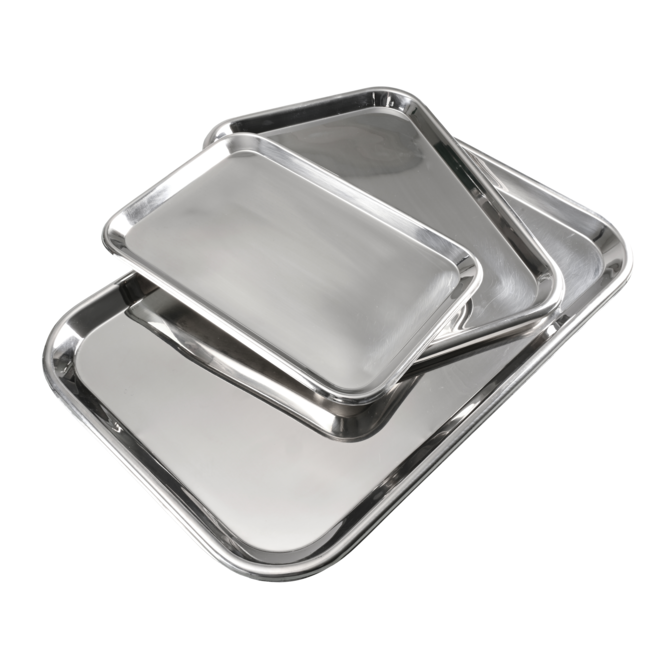 Stainless steel tray - practical, robust, hygienic and versatile, ideal for storage and transportation