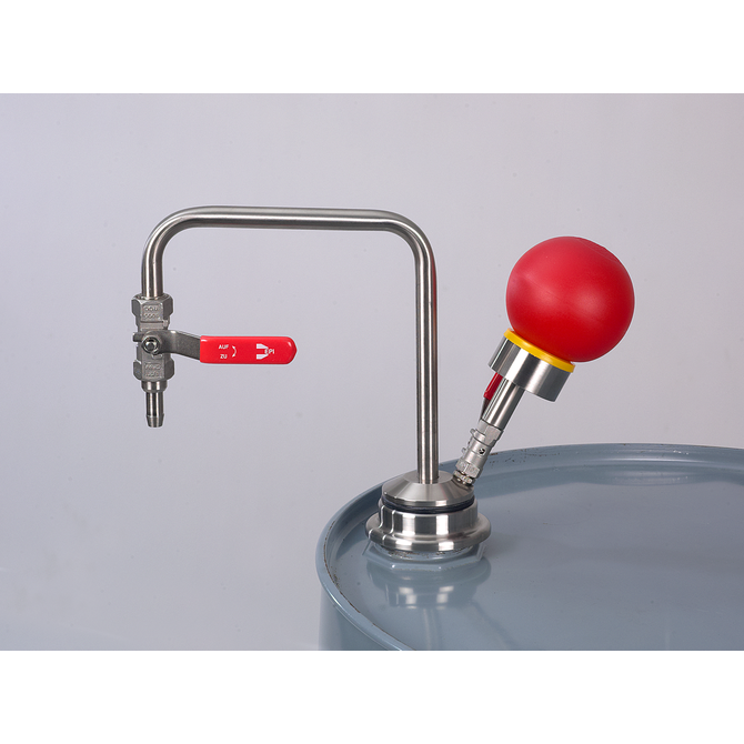 The gas tight barrel screw joint prevents hazardous gases from escaping from the barrel. G2" steel barrel thread, non-return valve with connection 1/8". Nickel-plated brass, seals made of FKM.
