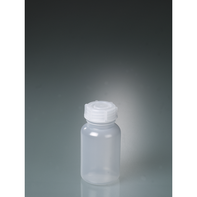 La botella de cuello ancho está disponible en los materiales LDPE, PP y LDPE marrón.