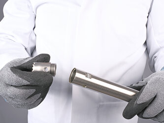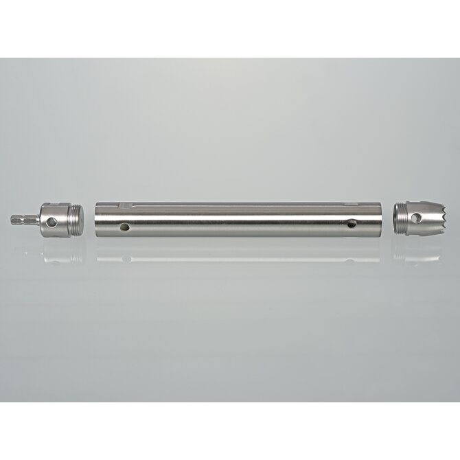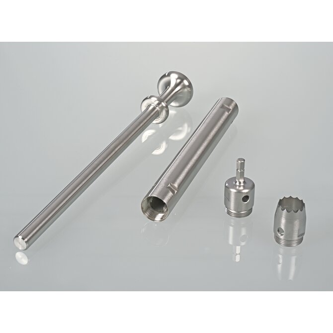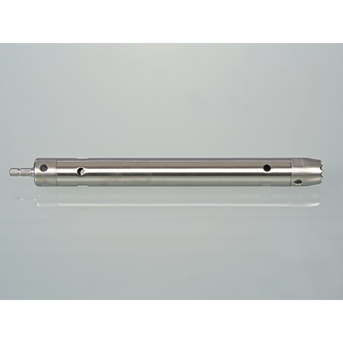 La robusta y duradera broca de muestreo está fabricada íntegramente en acero inoxidable 1.4404/1.4034 o aluminio/acero inoxidable 1.4034.