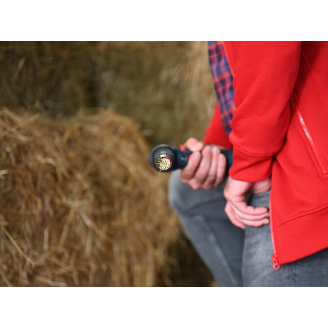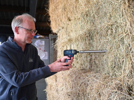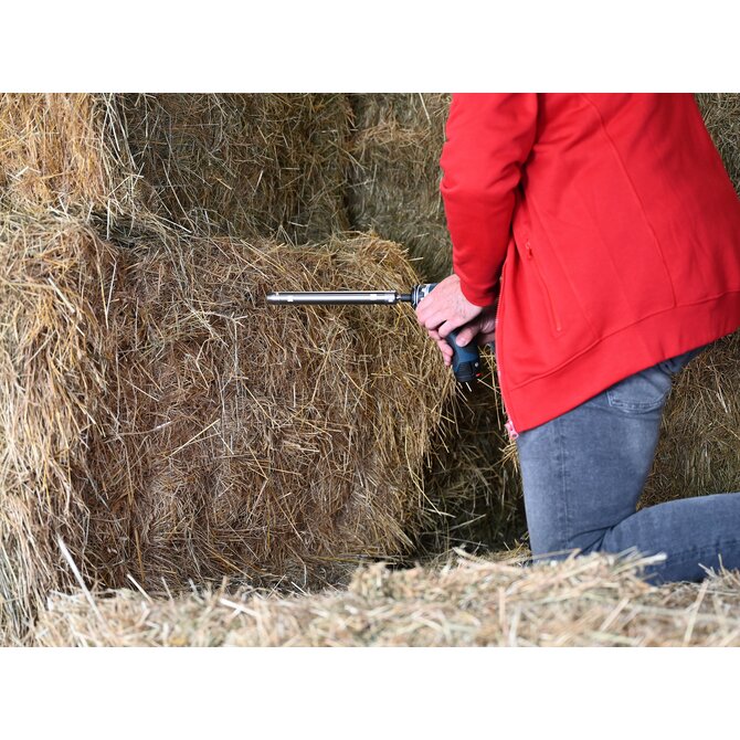 La broca de muestreo para heno y ensilado toma muestras de un silo o paca de forma rápida, limpia y sencilla. La toma de muestras con ayuda mecánica de un taladro o de un potente atornillador inalámbrico permite extraer la muestra sin esfuerzo y con poco esfuerzo manual.