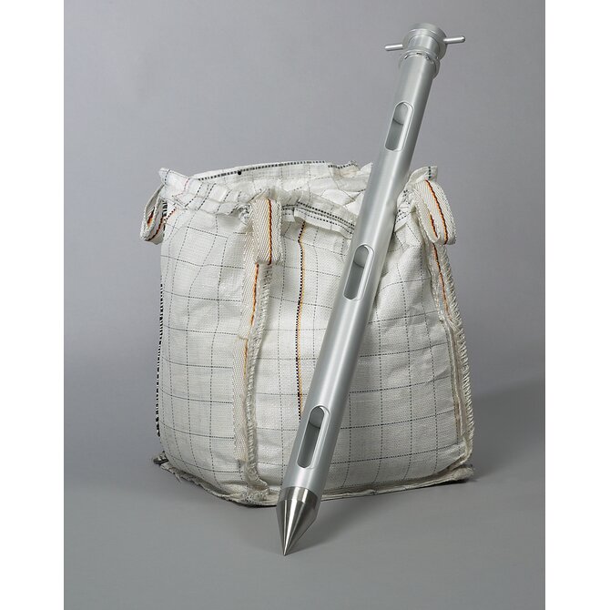 El tomamuestras de zona Jumbo se utiliza para tomar muestras a través de todas las capas, especialmente de materiales a granel de grano grueso. Las largas lanzas de muestreo con un diámetro de tubo de 50 mm y el volumen especialmente grande de la cámara permiten tomar grandes cantidades de muestras con granulometrías grandes.
