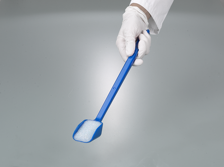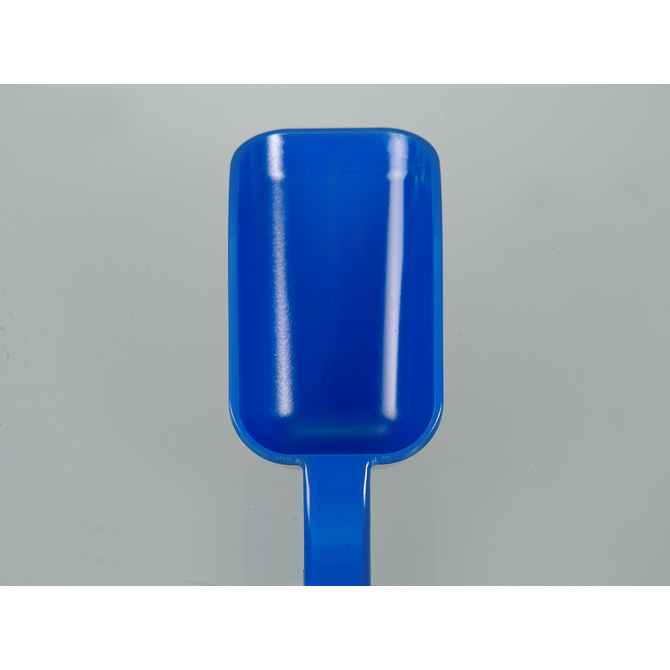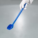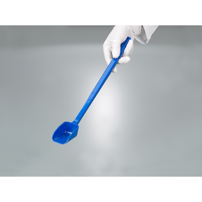 La pala para alimentos SteriPlast® de poliestirol azul se fabrica y embala individualmente para el uso desechable en nuestra sala blanca de Categoría 7 (10.000). Por último, se esteriliza con rayos gamma.