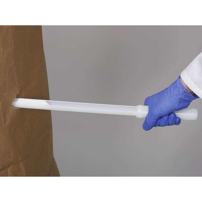 PowderDispo es el tomamuestras desechable ideal para la toma de muestras seccionales de sustancias en polvo o ligeramente cohesivas. La lanza permite tomar una muestra completa de todas las capas en sacos o recipientes más pequeños.